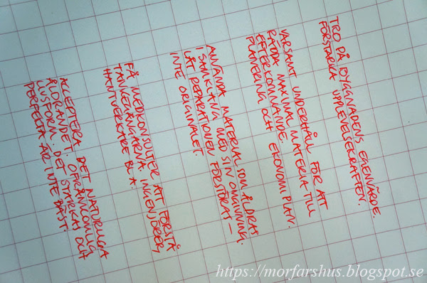 Hur man lämpligen hänger lakan på tvättlinan är en annan sak som underlättar och spar tid. Samt hur man bäst sträcker och viker lakan. Sen är det det där med tillvägagångssättet då man rengör en målad vägg, t ex i ett kök. Hur man manglar dukar är en annan sak som är bra att ha lärt sig. Jojomensan...