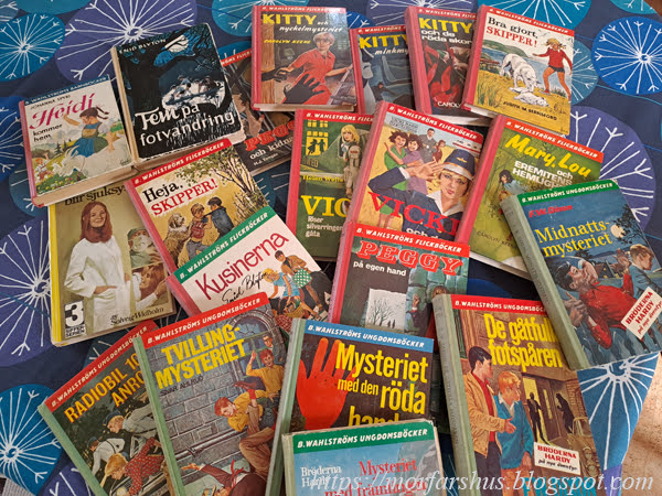 Av ungdomsböckerna utgivna av B. Wahlströms förlag är de med röda ryggar flickböcker och de med gröna är ungdomsböcker (mest avsedda för pojkar). Och de med röd rygg samt mindre format är barnböcker. 1966 var det år jag köpte och fick flest böcker från Wahlströms bokförlag. I boksamlingen finns bland annat: